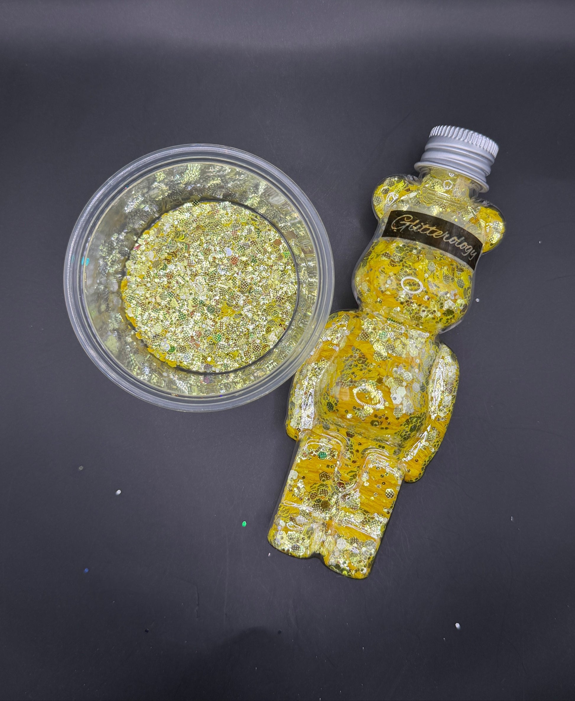 - Bear Bottle is 2oz; Glitter is 56-57g