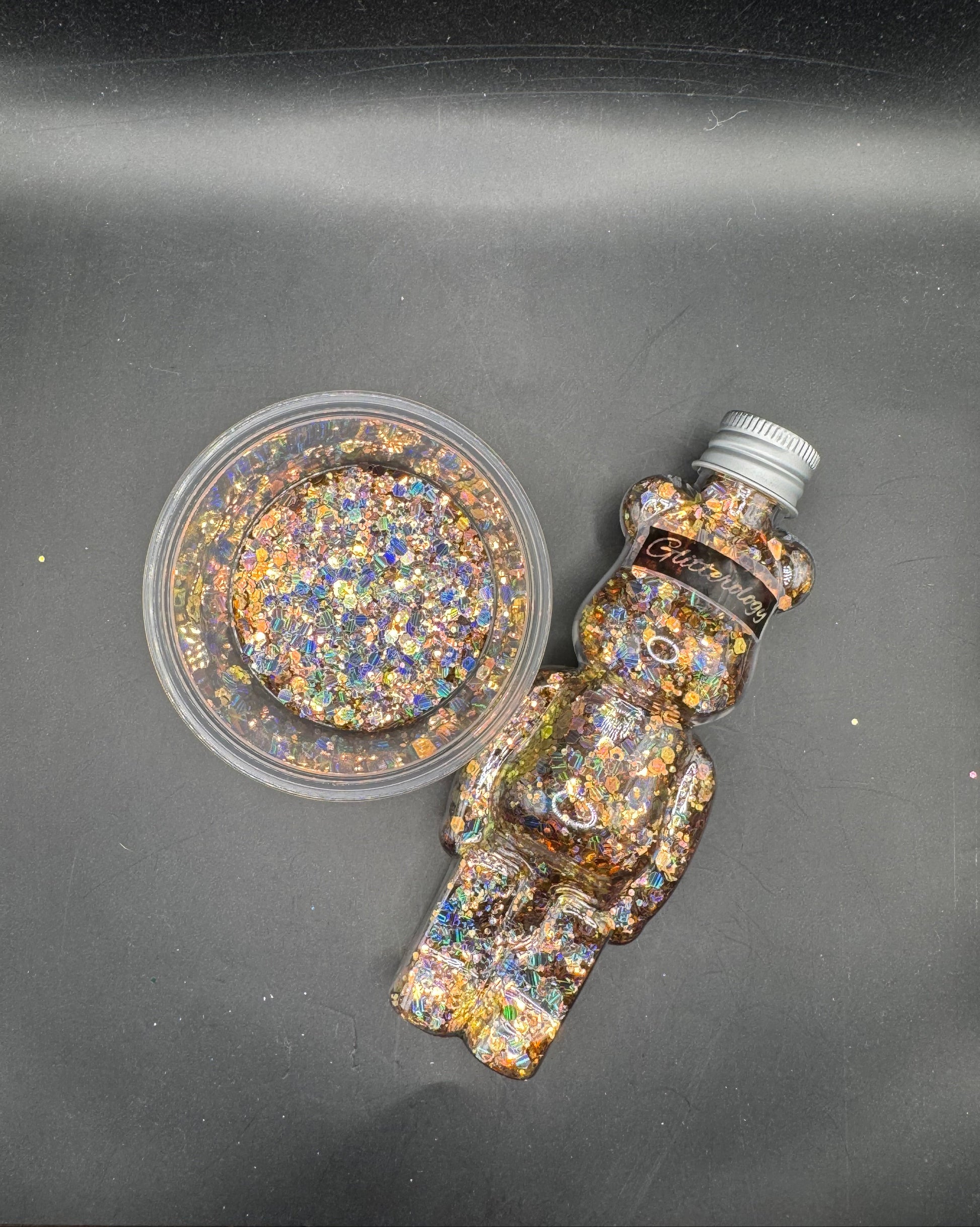 - Bear Bottle is 2oz; Glitter is 56-57g